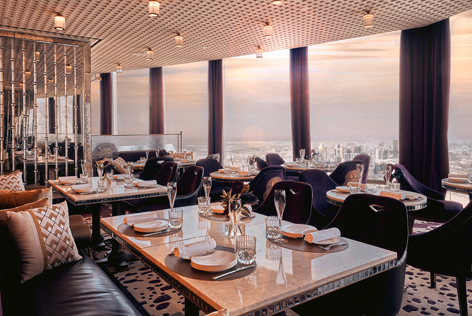 There’s no better place to take it all in than from the Four-Star At.mosphere Restaurant and Lounge, set at a breathtaking 1,450 feet on level 122 of the Burj Khalifa. Inside, the elegant French art deco aesthetic instantly impresses with mosaic-tiled floors, sculptural chandeliers, a sweeping staircase, mirrored ceilings and gold and jewel-toned velvet and leather seats. Still, it’s the floor-to-ceiling windows that are the headliners, affording awe-inspiring views of the city, best admired over a lavish meal or an afternoon tea above the clouds.