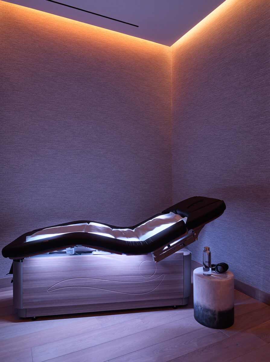 The bedroom isn’t the only place dedicated to better sleep. Four-Star The Spa by Equinox Hotels has science-driven treatments centered on promoting rest as well. The Art + Science of Sleep package includes two cryotherapy and wave table sessions at the spa. The cryotherapy requires three minutes in a minus-150-degree chamber, which, although not necessarily the most relaxing 180 seconds, does provide numerous benefits, such as reduced cortisol (better known as the stress hormone) and less inflammation. This can help alleviate pain and minimize the tossing and turning that can disrupt restful sleep.