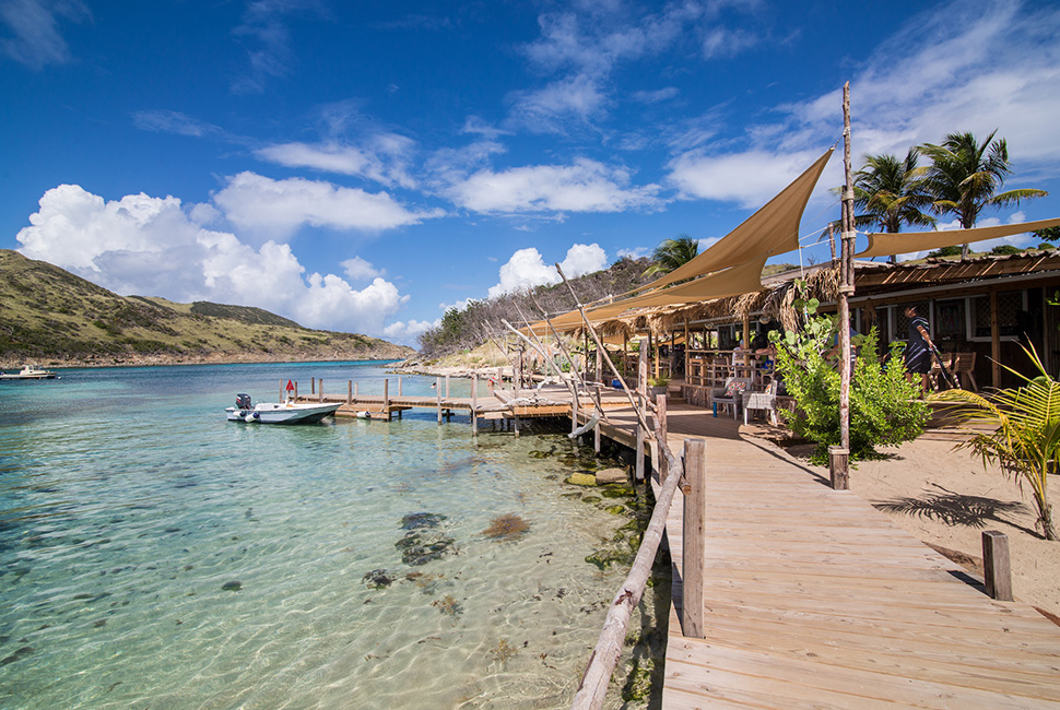 The island is home to two beach clubs. The best option is Karibuni Restaurant, a stylish, eco-conscious eatery that’s separate from its namesake boutique hotel, which sits across the water on the mainland. Operating since 1988, Karibuni is known not only for its eclectic menu, which ranges from Creole platters and Thai beef salad to grilled lobster and cod fritters, but also for its exclusive, on-the-sand seating, beachside service and a commitment to protecting the delicate island environment for generations to come.